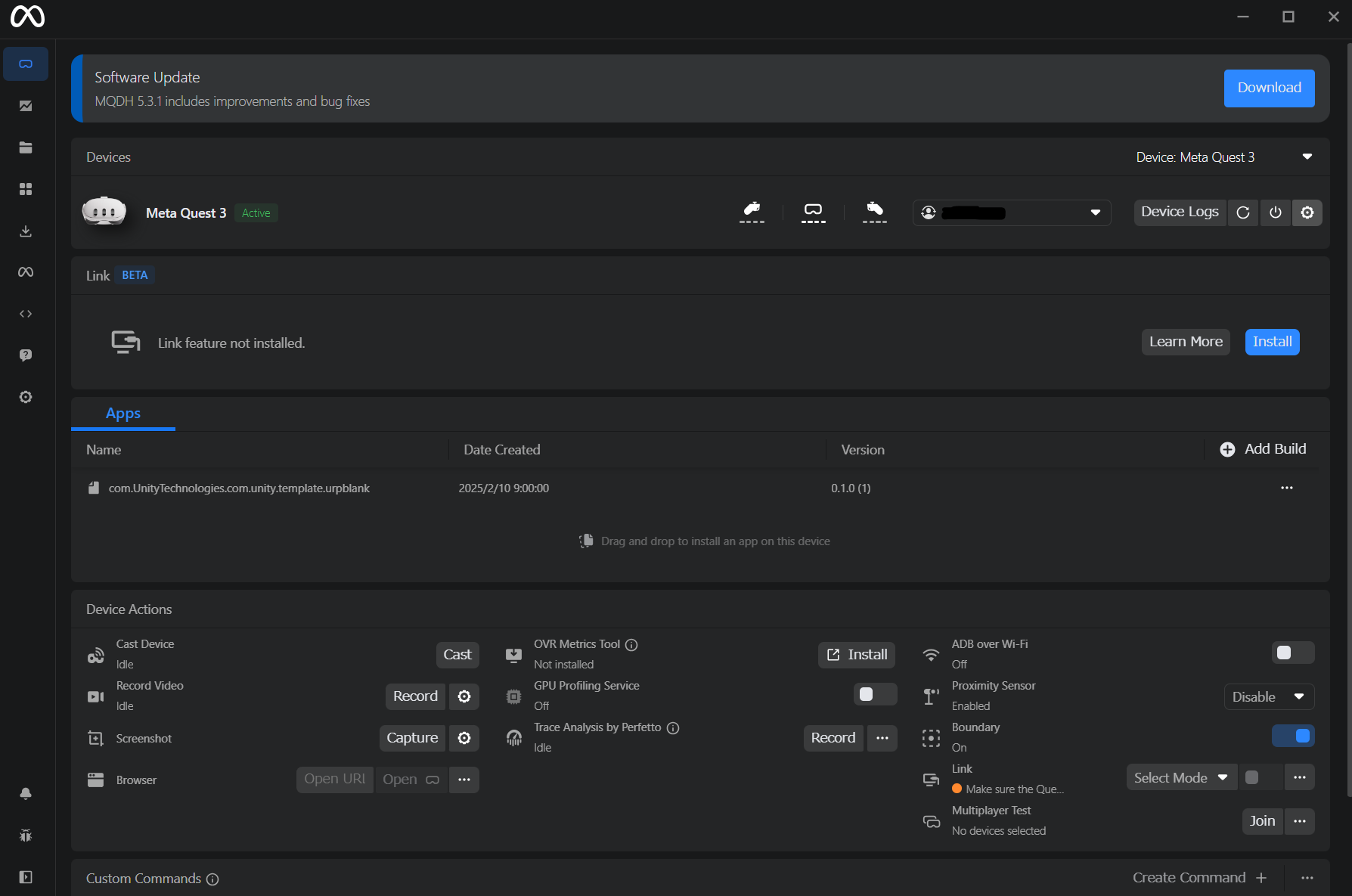※一つのメタクエスト機器に一つの開発者アカウントしか入れられません