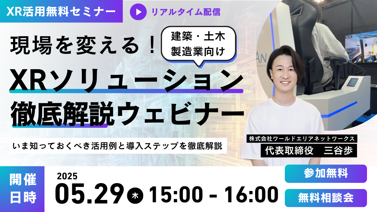 この度、2025年5月29日(木)15時から、「現場を変える!建築/土木/製造業向けXRソリューション徹底解説ウェビナー」ウェビナーを開催いたします!