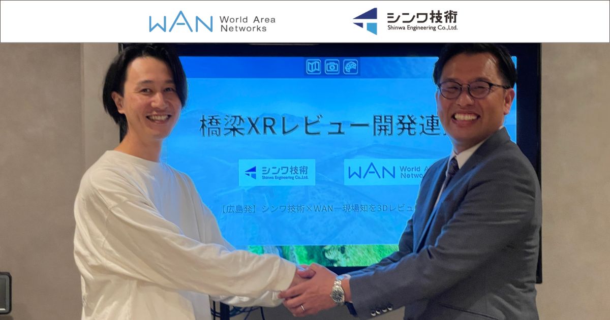 有限会社シンワ技術(本社:広島市、代表取締役:勘田 泰邦、以下 当社)は、株式会社ワールドエリアネットワークス(本社:広島市、代表取締役:三谷 歩、以下 WAN)と連携し、橋梁設計で養った技術・知識をXRへ転用するレビュー環境づくりに着手しました。ドローン等で取得した現地データをもとに、同一視点で検討案を見比べられる“共通ビュー”の整備を進め、会議室・現場・リモートのいずれでもPC/Meta Questで共有できる体験を段階的に提供していきます。