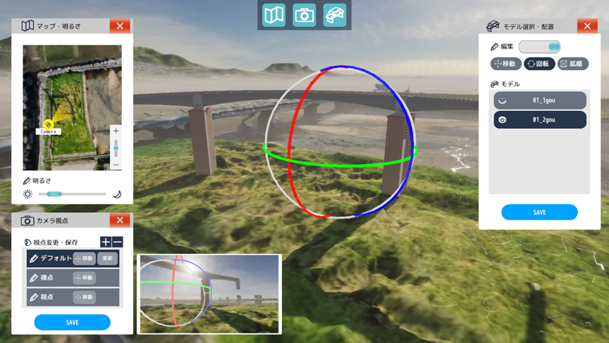 本取組では、ドローン等で取得した現地データをリアルな質感で3D可視化し、河川・堤体・周辺環境を直感的に把握できることを目指します。さらに、橋梁モデルや検討案を同一視点で切り替えて比較できるレビュー体験を提供し、関係者間での前提共有をスムーズにします。