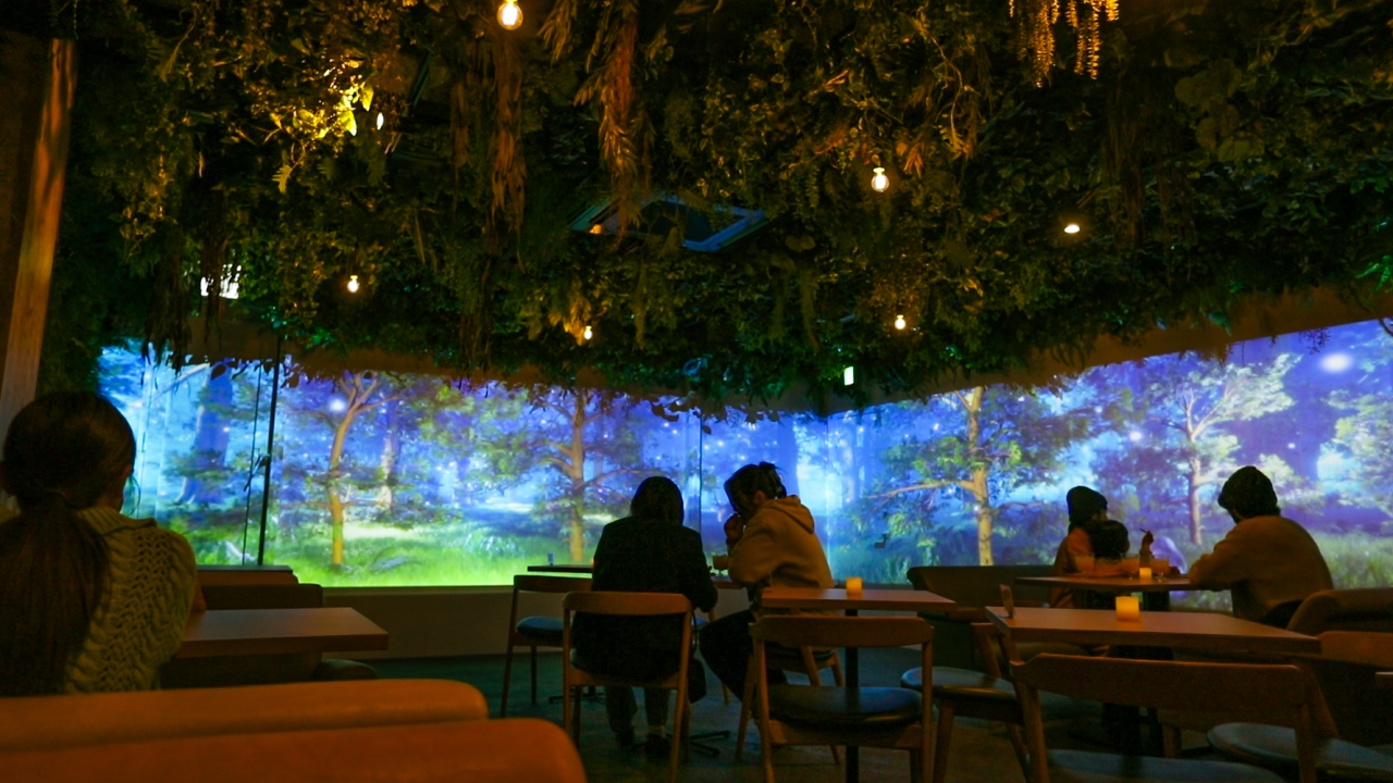 プロジェクションマッピングを活用することで、店内に自然の雰囲気を演出するだけでなく、季節や時間帯によって雰囲気を変化させることも可能となり、昼間は明るく活気ある森の風景を、夜間は幻想的でロマンチックな光景を提供し、顧客に様々な楽しみ方を提案しました。